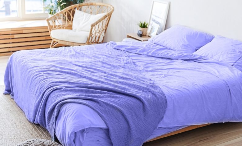 O alternativă este alegerea unei pături în culoarea Very Peri, o cuvertură, fețe de pernă, pled sau covor.
