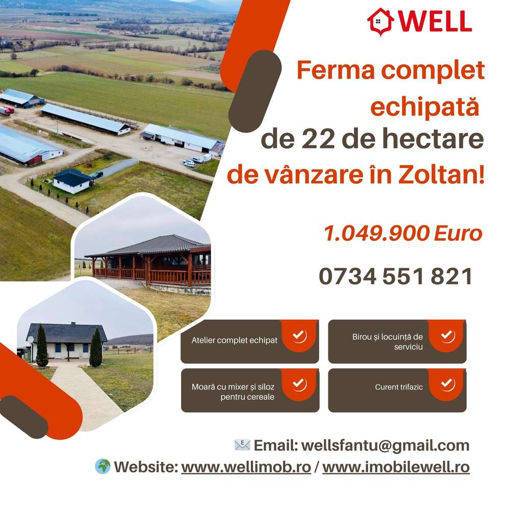 Agenția Imobiliară Well Sfântu GheorgheDepozite de vânzareCovasnaGhidfalauGhidfalauFerma complet echipată de 22 de hectare de vânzare în Zoltan!
