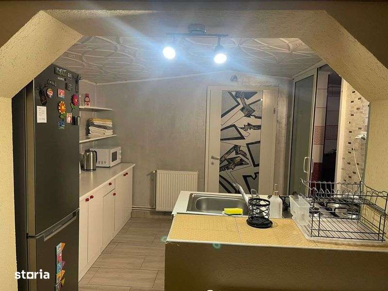 inchiriez apartament intr-o casa, dormitor, dressing, bucatarie open space cu sufrageria, baie cu dus, masina spalat rufe, frigider, tv, internet, cablu, parcare, curte comuna, terasa, gratar, 450 eur...