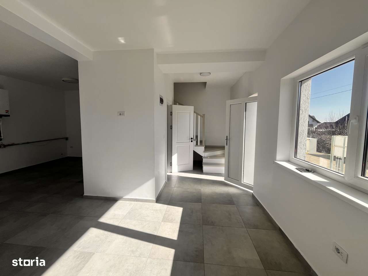 Dispune de living, bucatarie, baie si camera pentru centrala.