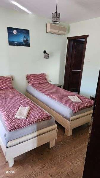 Pensiunea dispune de 4 camere cu baie, living generos,bucatarie utilata full.Doua cam.de 2 pers.,una de trei,una de patru,exista o constructie anexa cu inca trei cam. In total 21 de paturi.