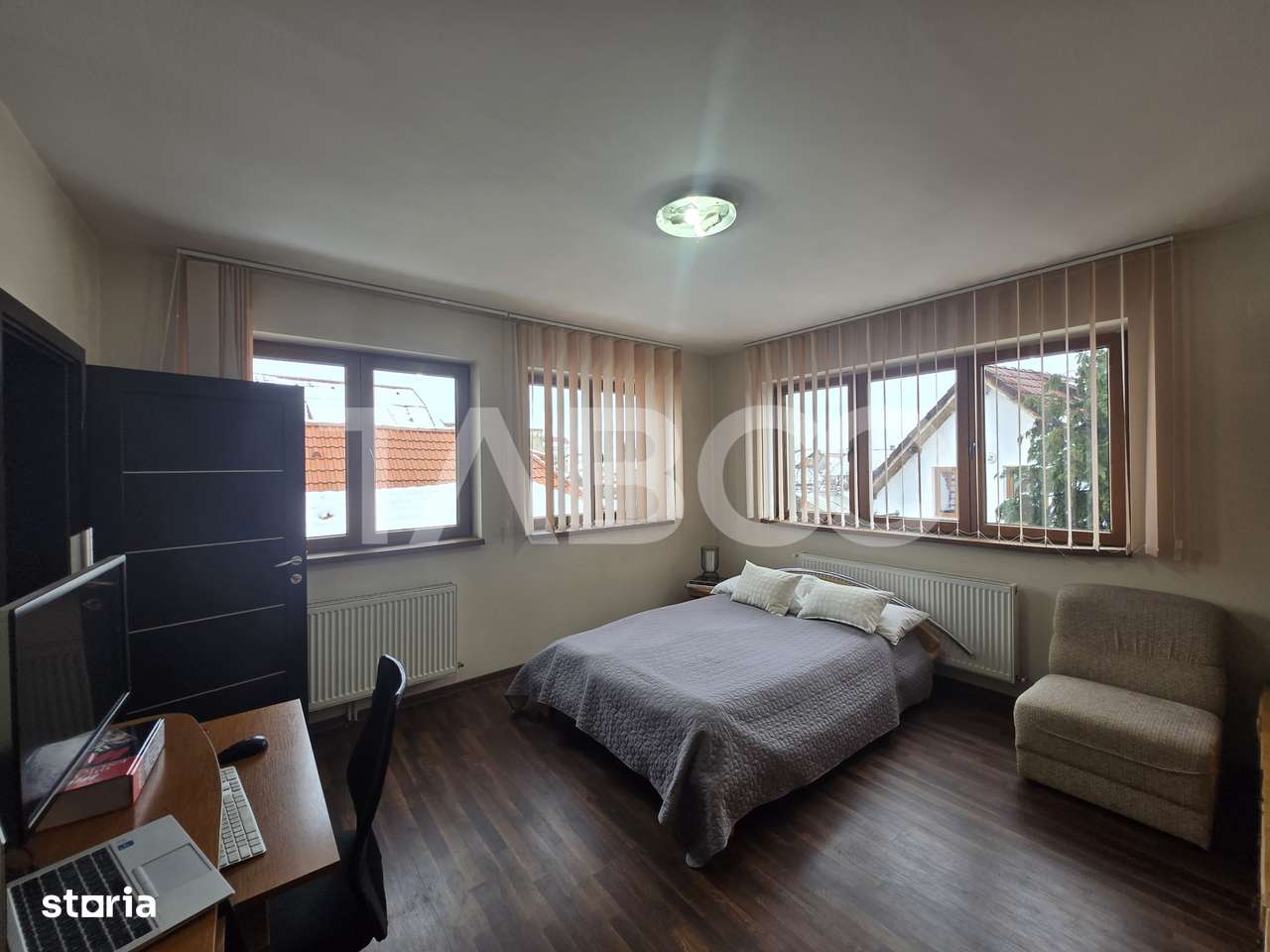 Casa de inchiriat in Sibiu, str. Teliuc nr. 4, amplasata pe un teren generos de 548 mp, cu spatiu verde si zona pavata, ideala pentru relaxare si parcare. Suprafata utila a imobilului este de 127,7 mp...