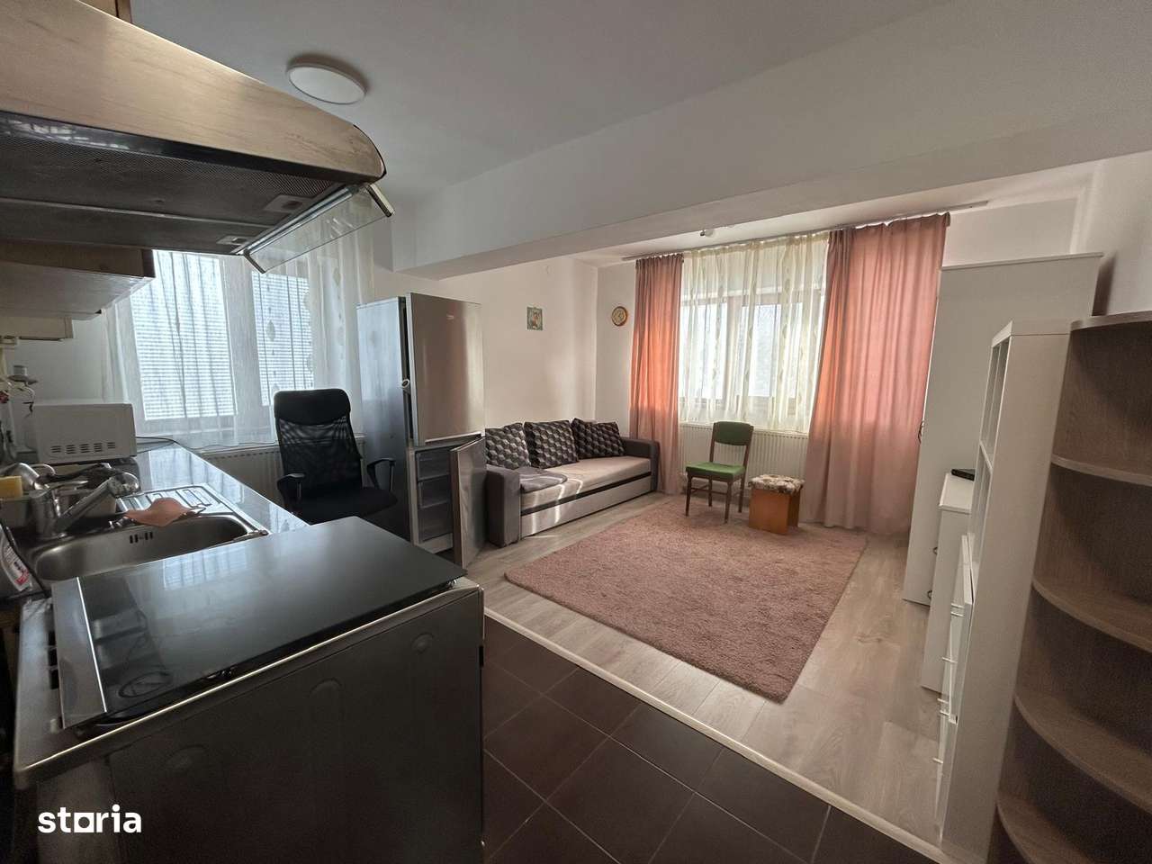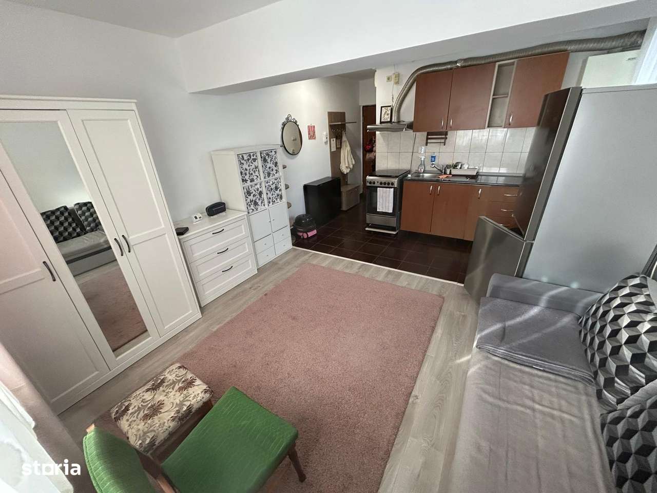 Îți propun un apartament de închiriat, cu 25 mp. Este situat la parter într-un bloc de cărămidă cu două etaje. Apartamentul este dotat cu mobilă și electrocasnice, inclusiv mașină de spălat și frigide...
