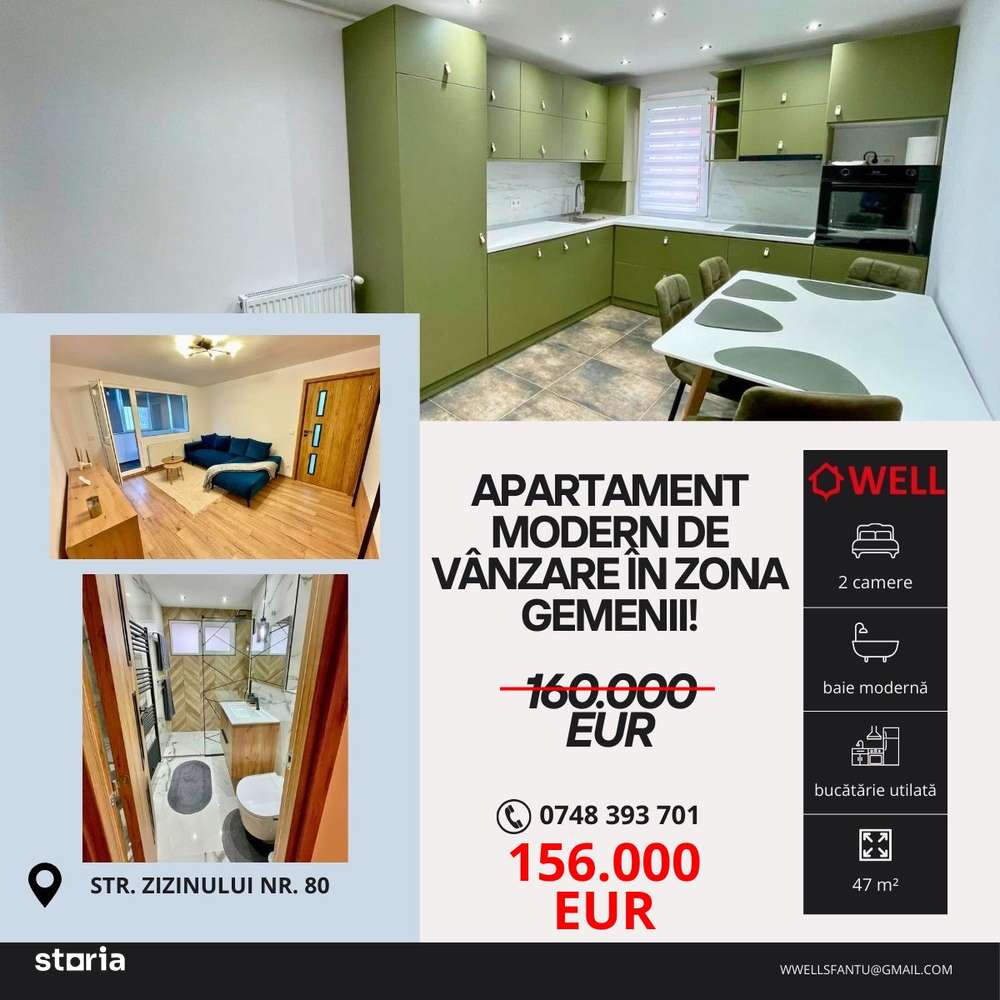 Exclusiv apartament 2 camere ,etajul 3 Gemenii