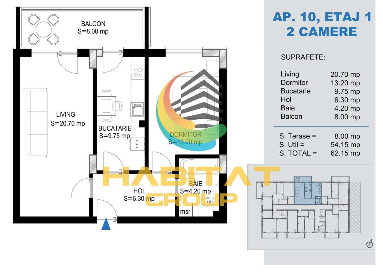 AP. 2CAM. + GRADINA POZITIE SUD-EST / BLOC P+3. COMISION 0%!