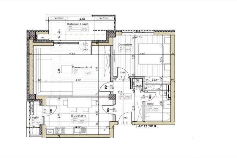 Apartament cu balcon și bucătărie separată, 60 mp
