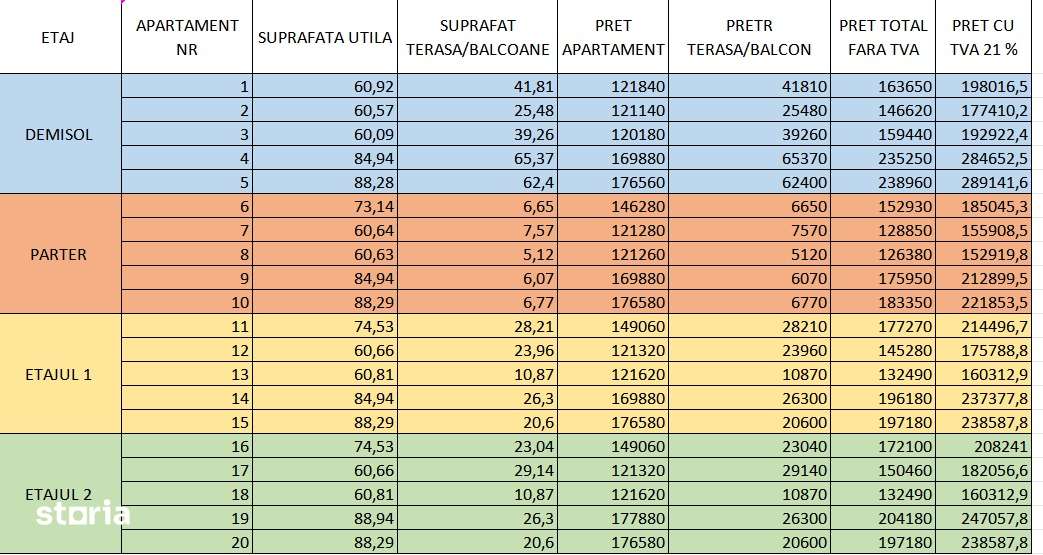 - Prețul pe metru pătrat