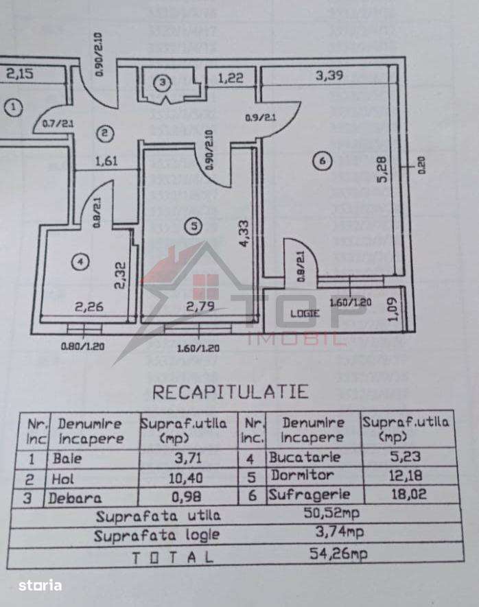 Apartament de 2 camere in zona garii de 54 mp