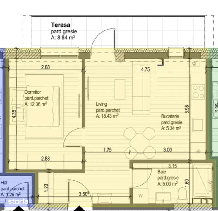 Apartament 2 camere – str. Plătinișului, etaj 3
