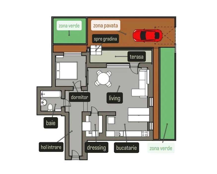 2 camere cu gradina proprie de 70mp - Evocasa Orizont