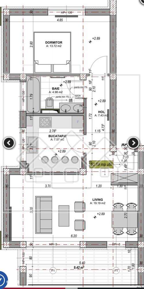 Penthouse 2 camere - 56 mp, 2 bai - Ansamblu nou