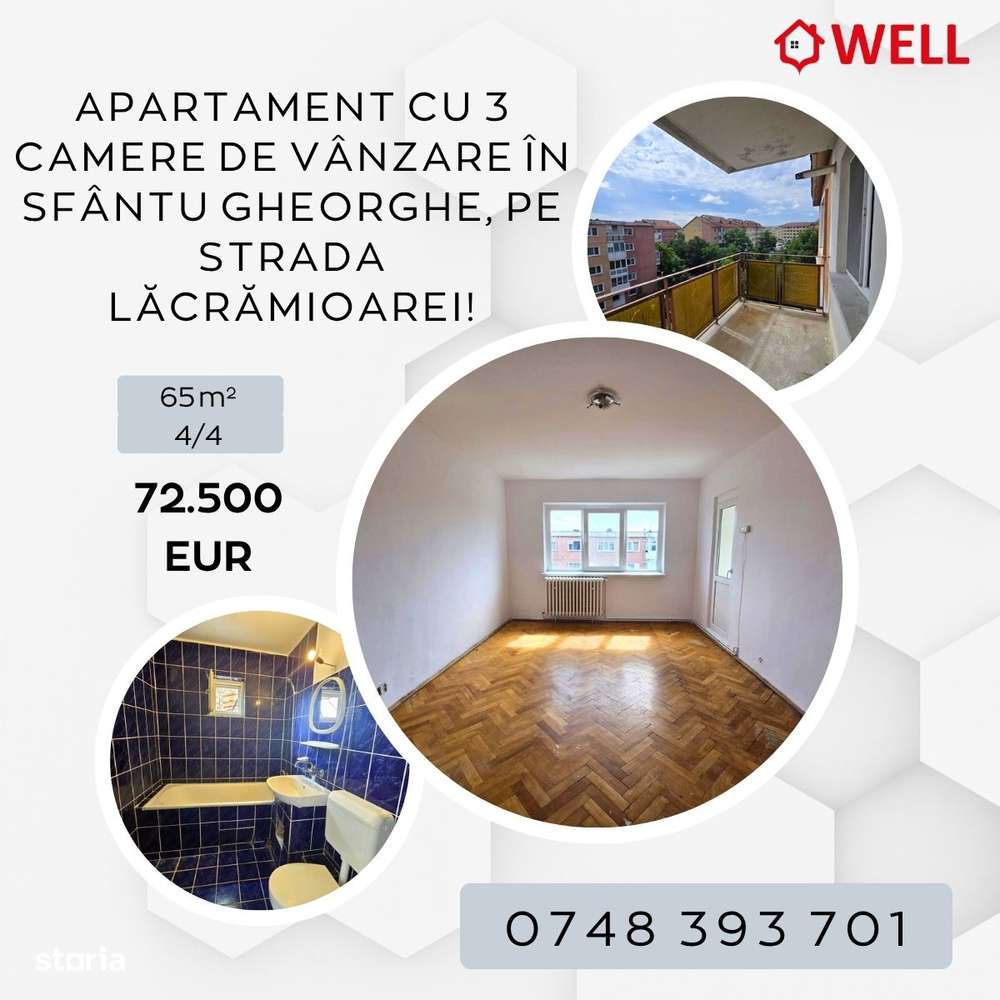 Apartament cu 3 camere de vânzare în Sf. Gheorghe, pe Aleea Hărniciei!