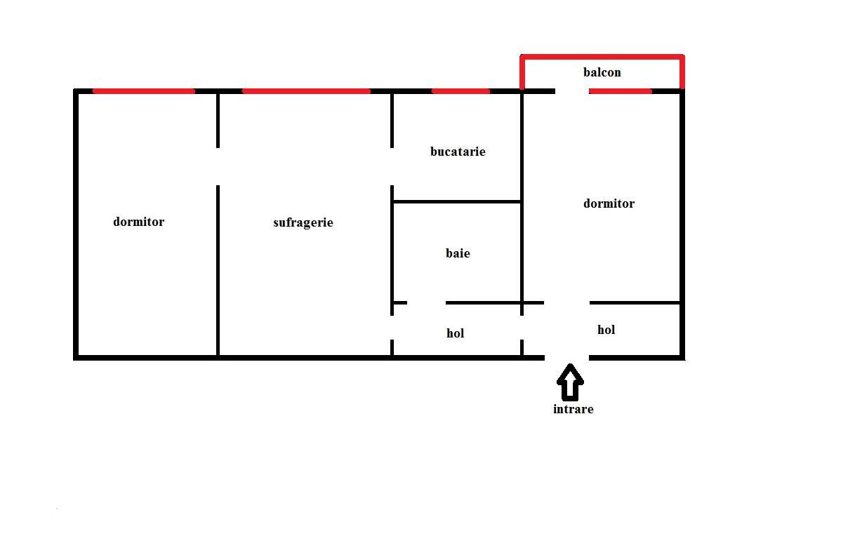 Apartament 3 camere, decomandat, 59mp, Dacia