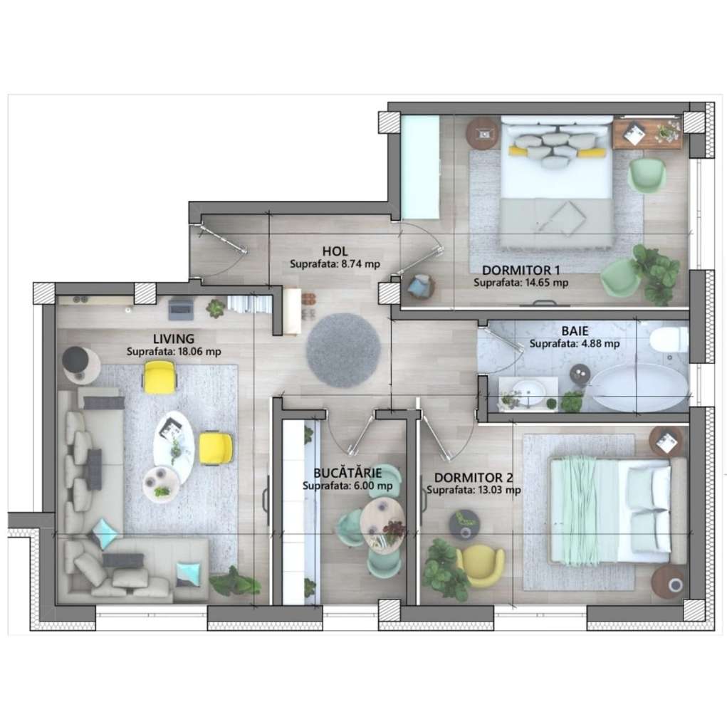 Apartament 3 camere – Lunca Cetățuii | Bucătărie închisă | Intabulat