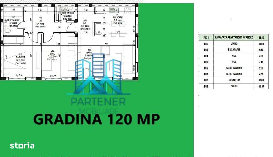 Apartament 3cam 69mp+gradina35mp, Parcare, Rediu–Gradinita Kiki ,mut