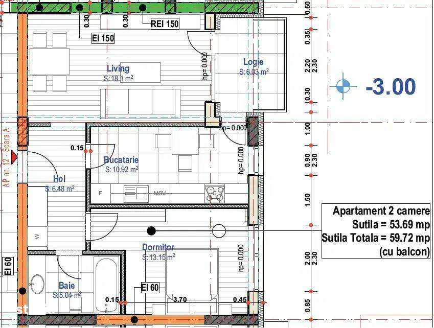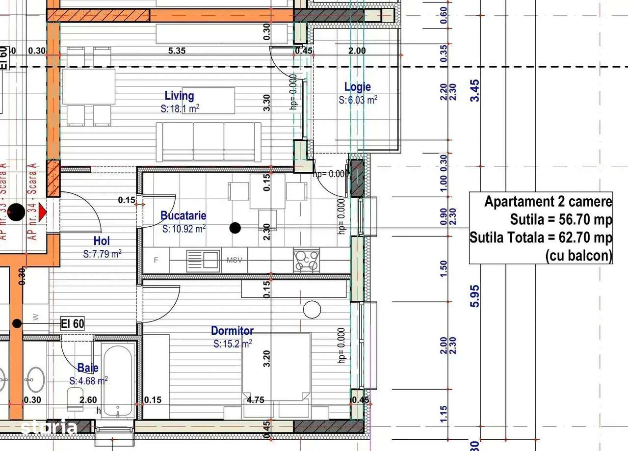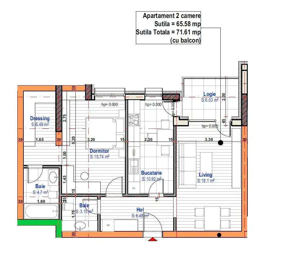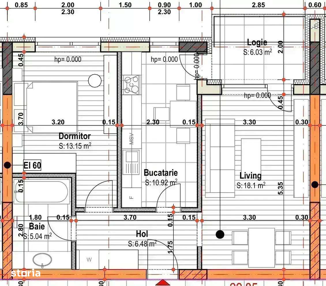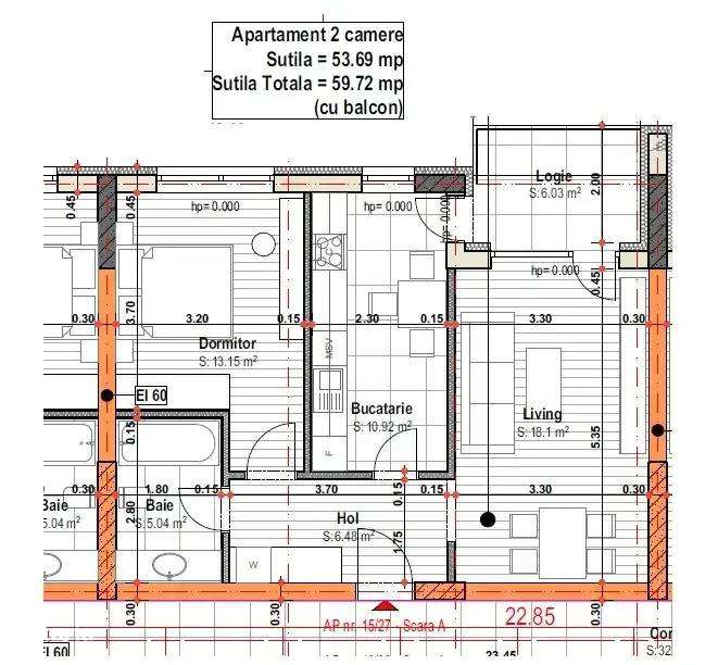 Apartament nou 2 camere – 50 mp utili-Incalzire in pardoseala – Co