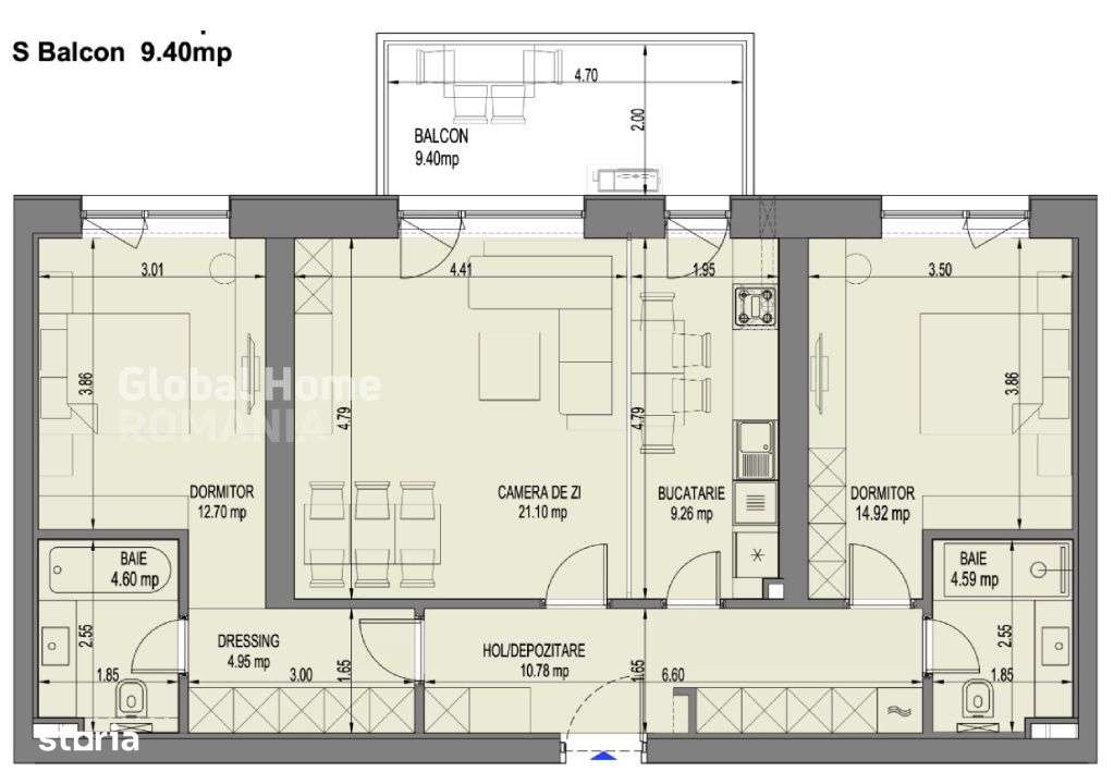 Apartament 3 CAMERE - 96 Mp + 11 Mp Balcon