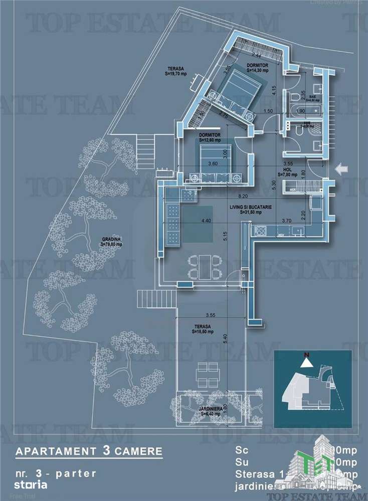 Direct dezvoltator 3 camere, gradina proprie - zona Mosilor
