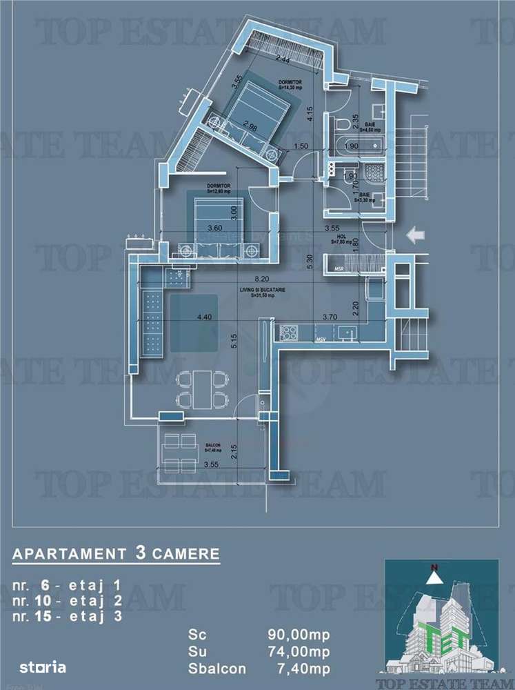 Apartament 3 camere Polona