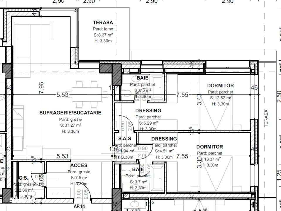 Apartament 3 camere, 93,5 mp, terasa 32,5 mp, zona centrala