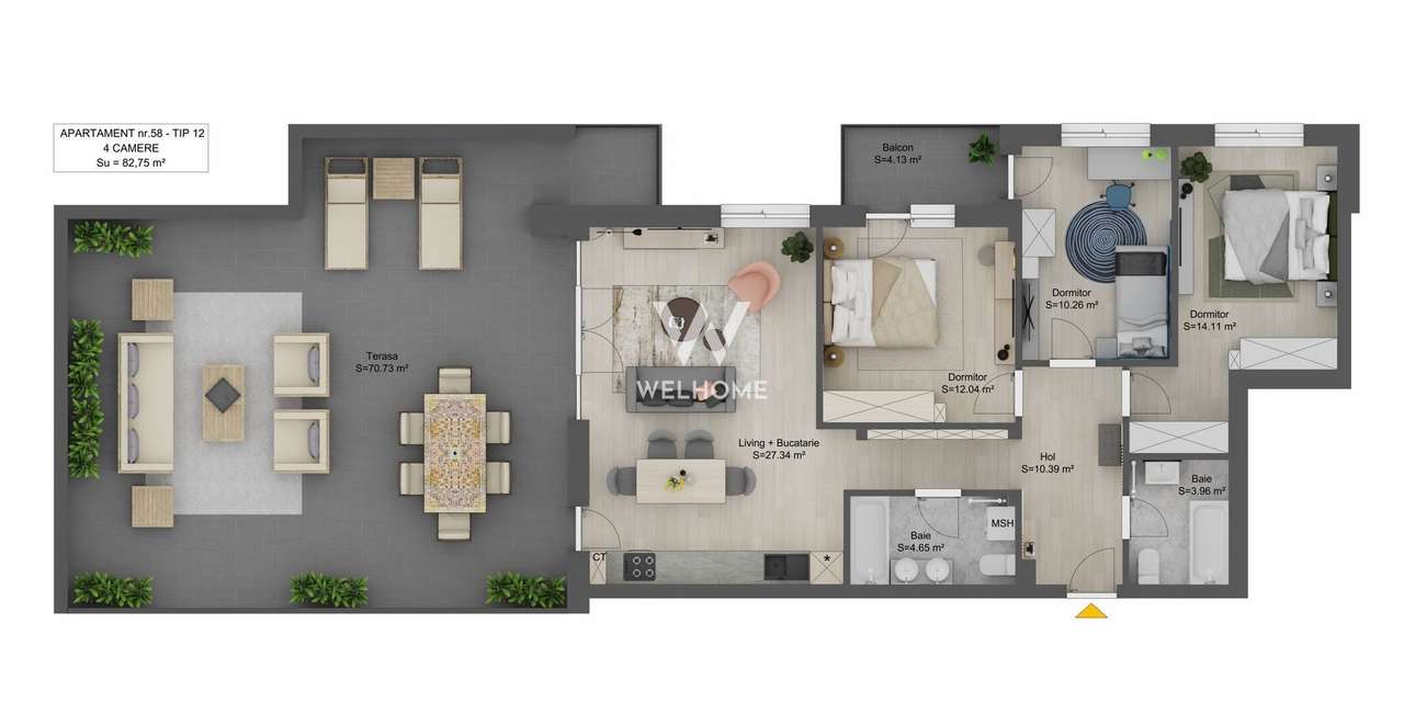 NOU, Apartament , 4 cam- 93,18mp+17,30 Terasa, Calitate Premium! Zona