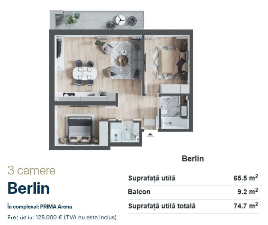 Apartament de vânzare cu 3 camere în PRIMA ARENA, Oradea