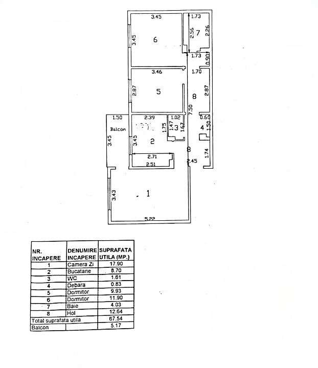 Apartament 2 camere confort 1 decomandat Radu Negru fara imbunatatiri