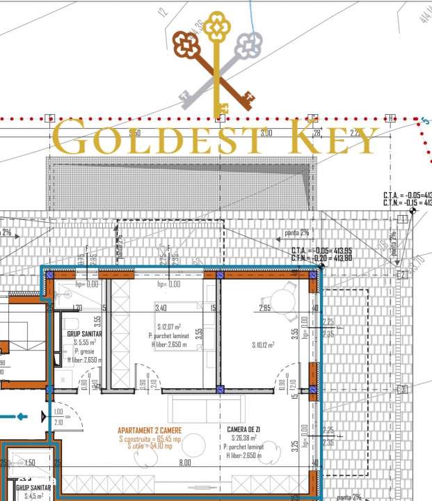 Apartament 2 camere, 42mp, terasa de 35mp, loc de parcare, zona Baciu