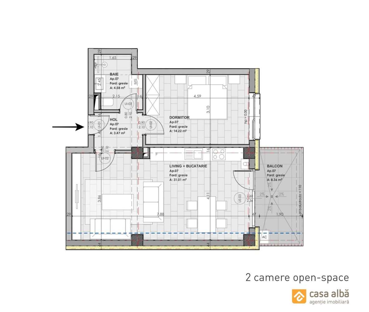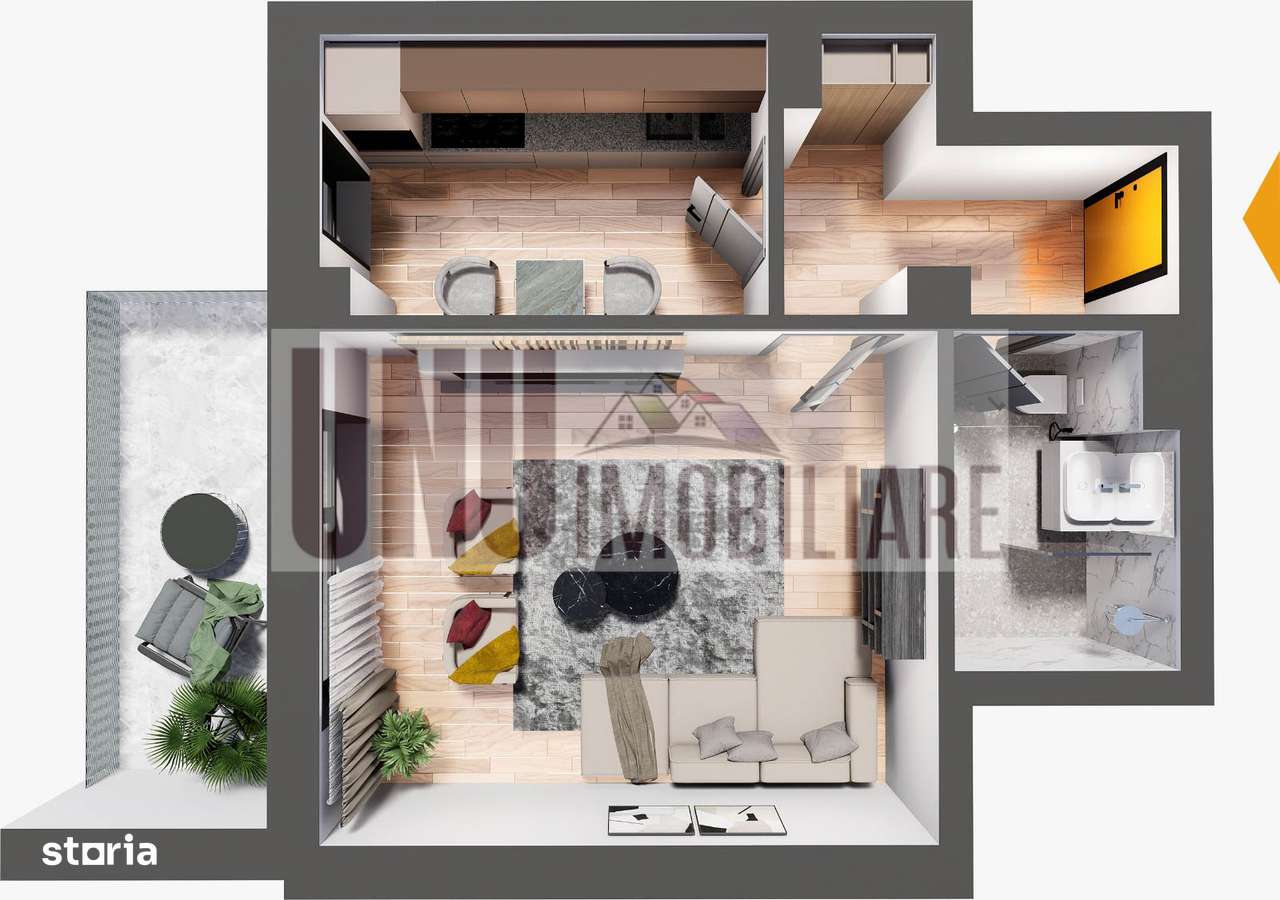 Apartament 2 camere open space/studio/ 46,36 mp/ ZERO COMISON