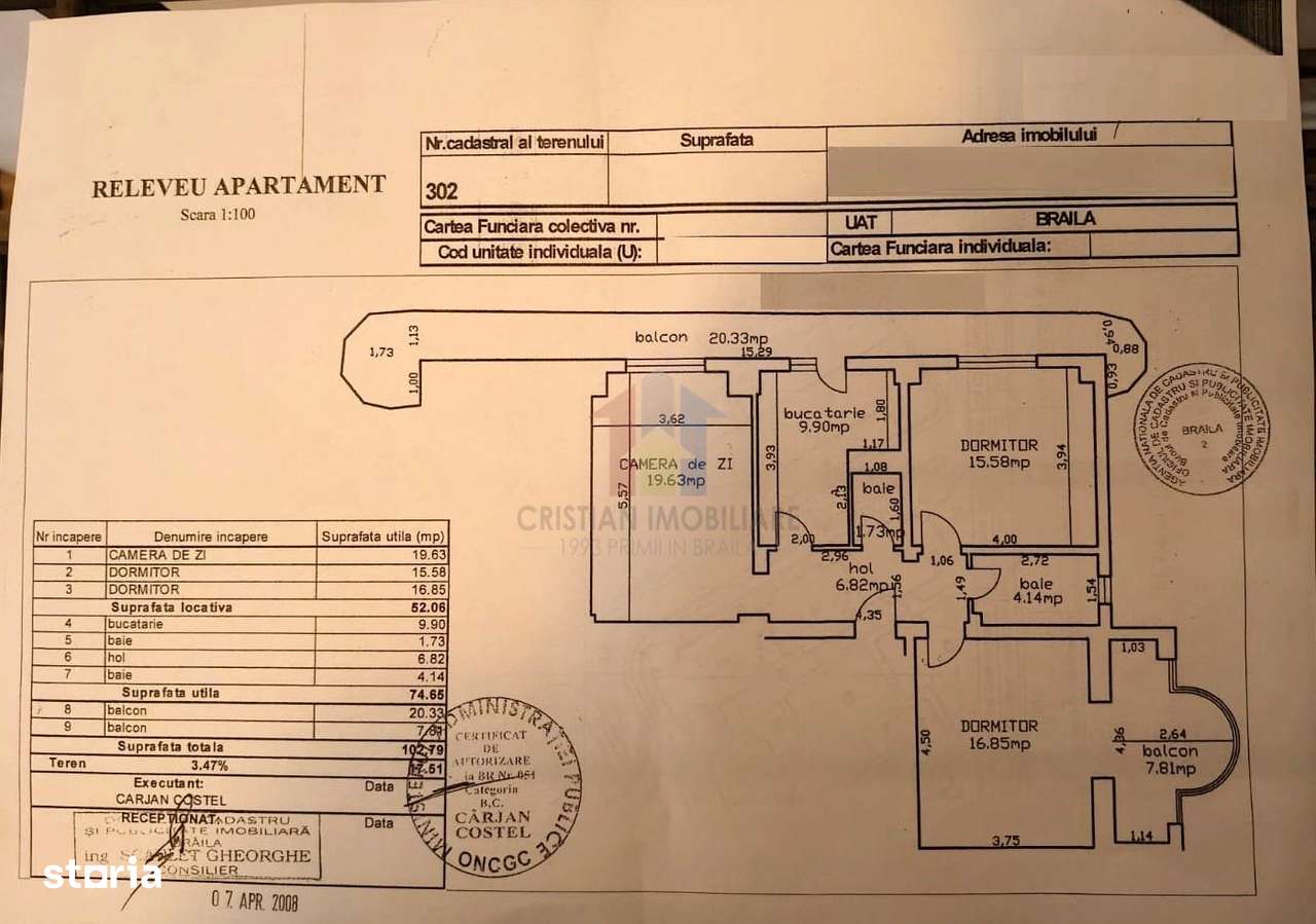 De vânzare apartament 3 camere Cartier Buzaului
