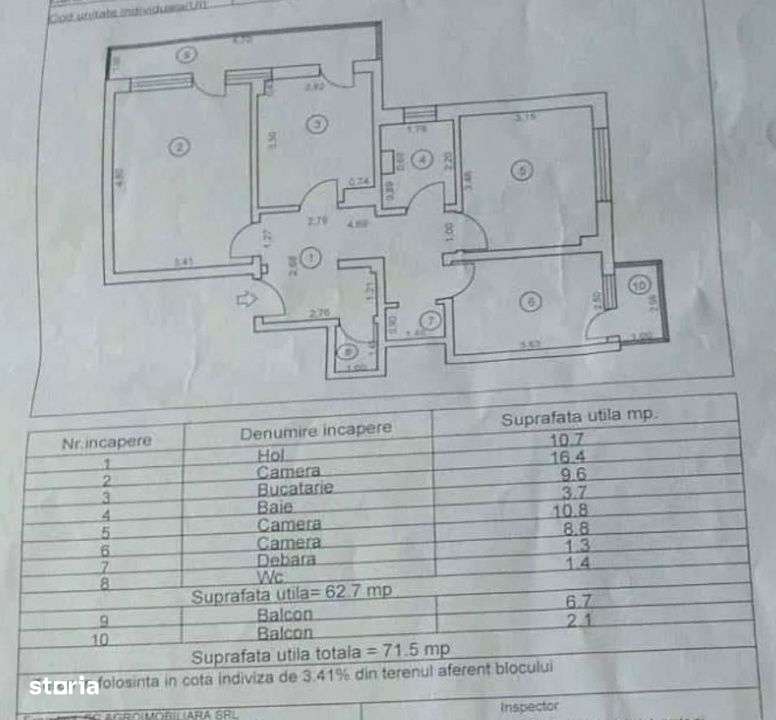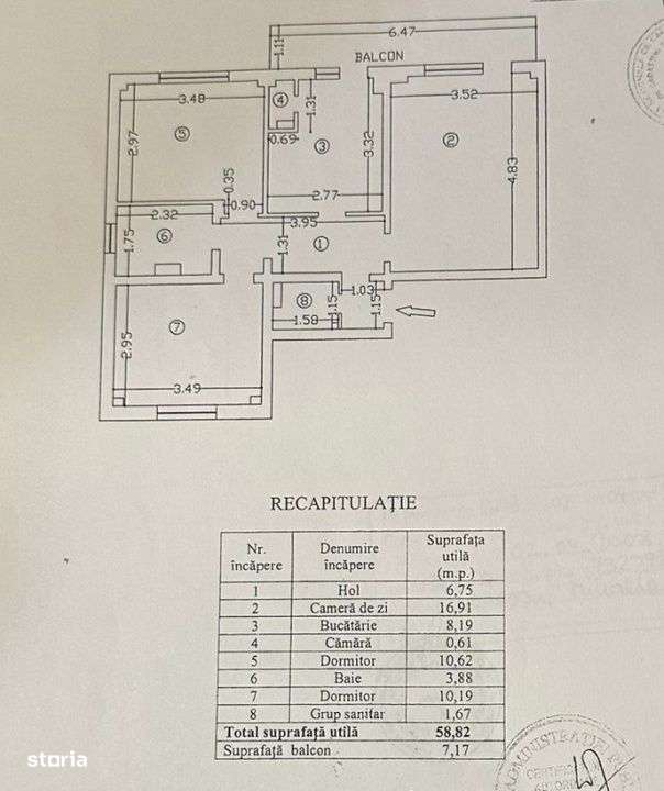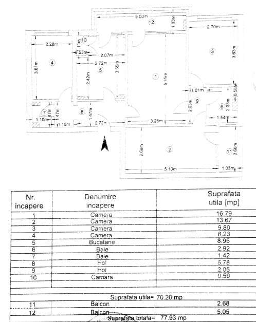 Apartament 4 camere, 2 bai, 2 balcoane, 77.93mp total