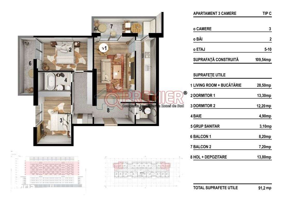 - 2 camere