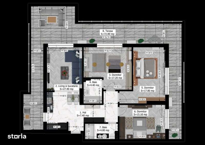 Ap 3 Cam + TERASA PENTHOUSE Incalzire in Pardoseala Ansamblu Nou Rahov