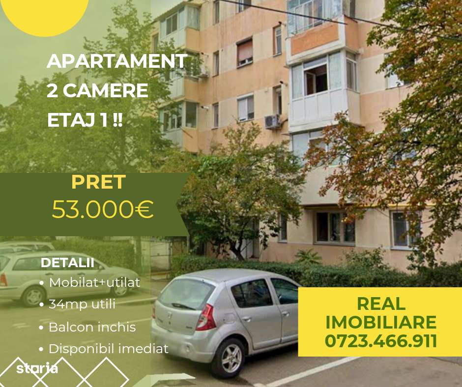 Apartament 2 camere, etaj 1, mobilat !