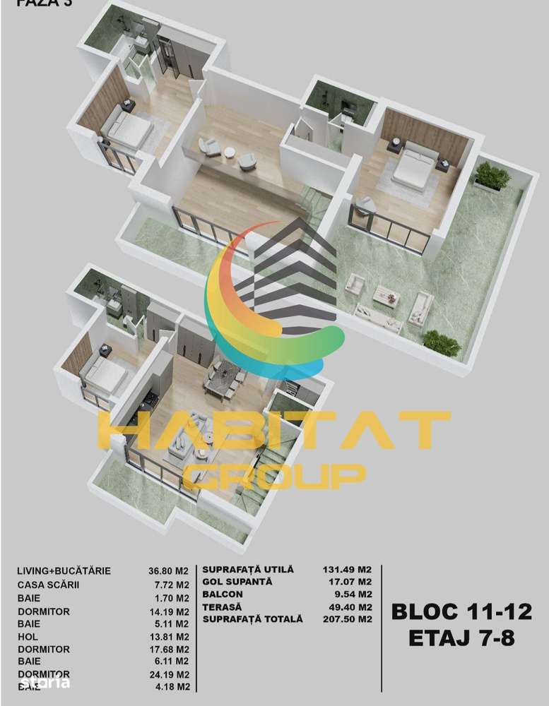 Penthouse 4 camere suprafata 210 mp Acte Gata!