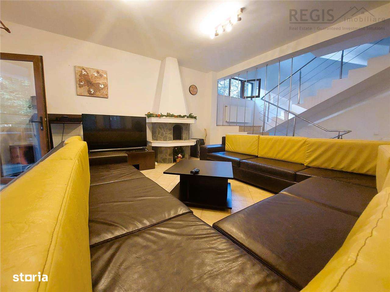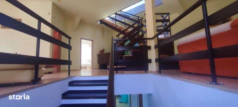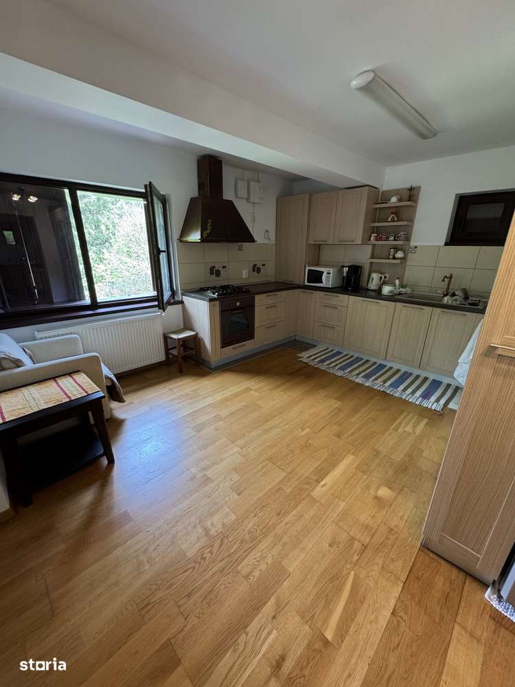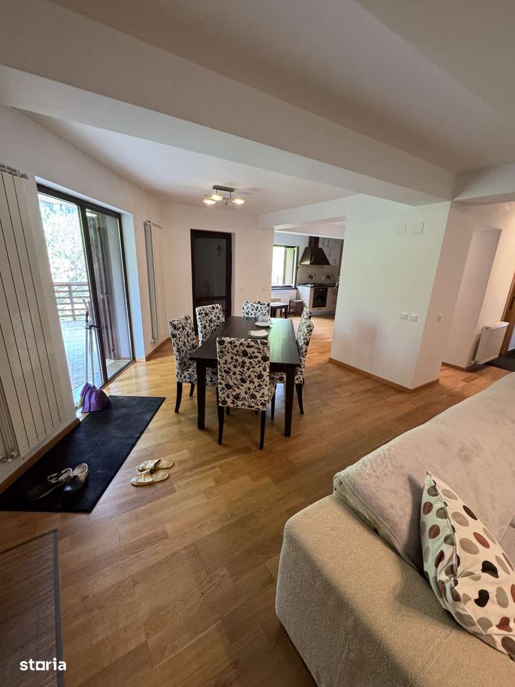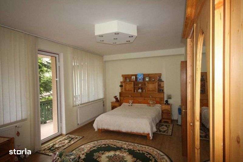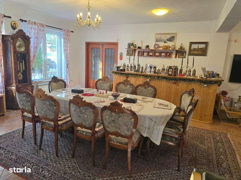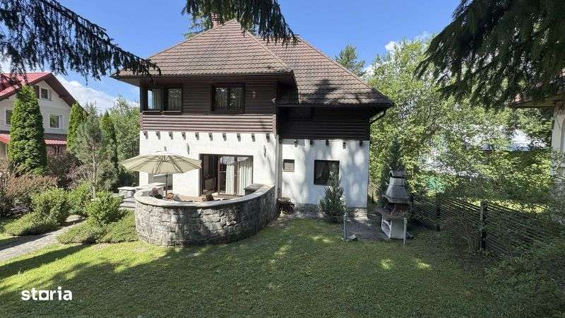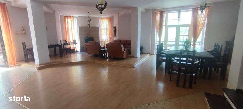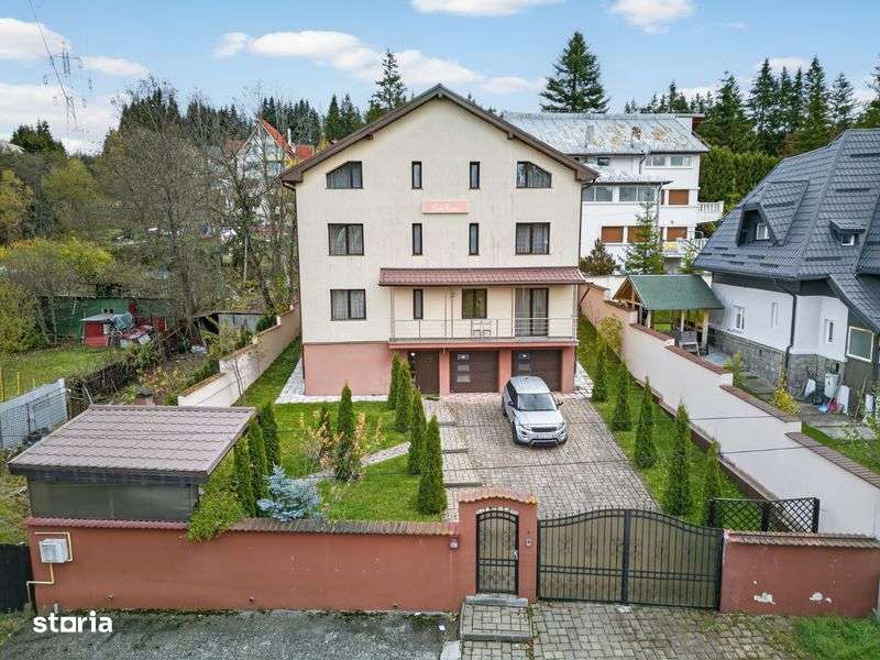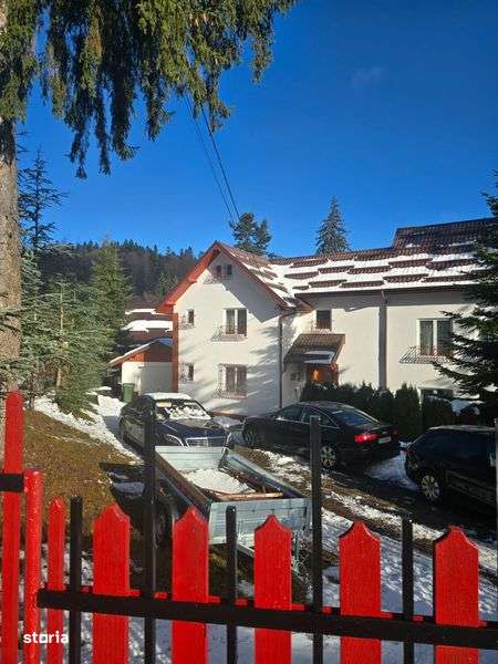 Casa de vacanta in Predeal , 9 camere , 10 bai , un living , o bucatarie , terasa , zona de dining , parcare , doua garaje interioare . Foisor si zona de gratar in curte.