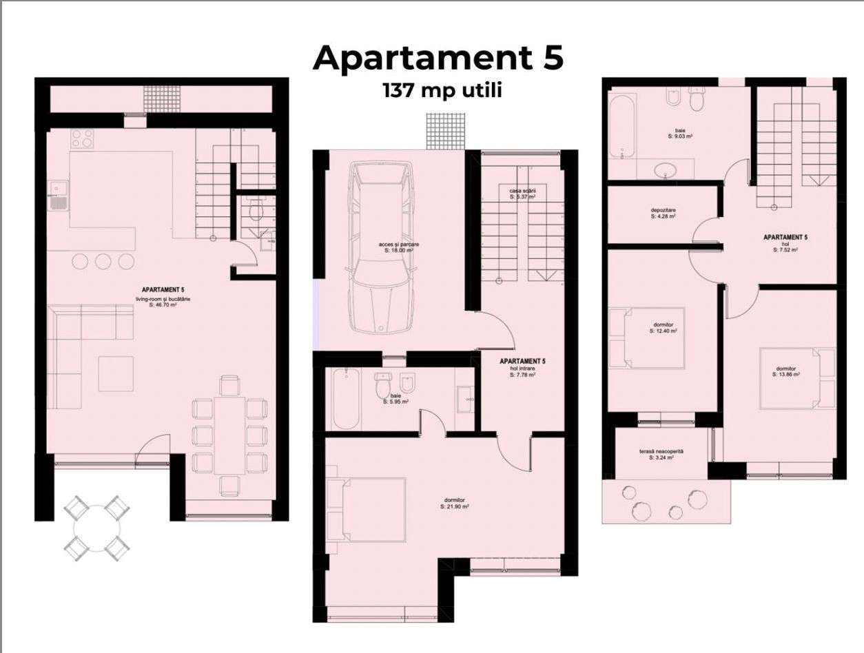 Apartament la casa – 4 camere + demisol util + curte si garaj Sibiu