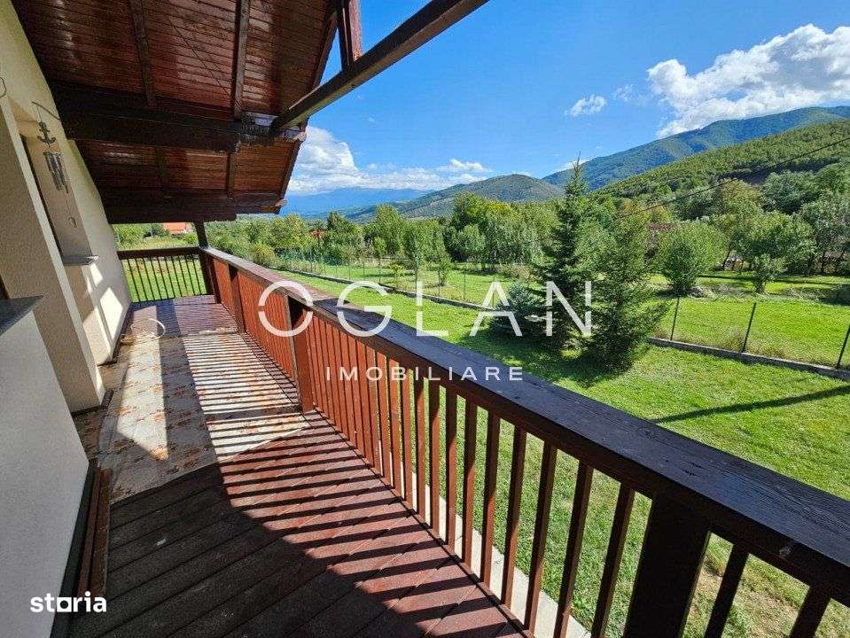 Locatie cu multa vegetatie si panorama muntii Fagarasi