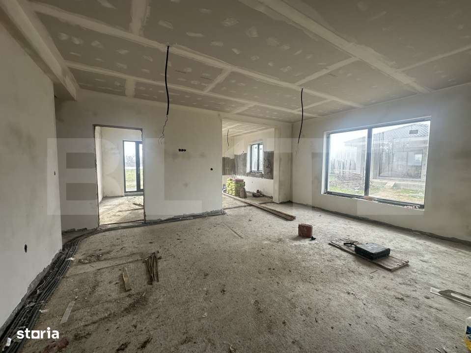 Casa cu 4 camere semifinisata, 92 mp, teren 400 mp, in Vetis