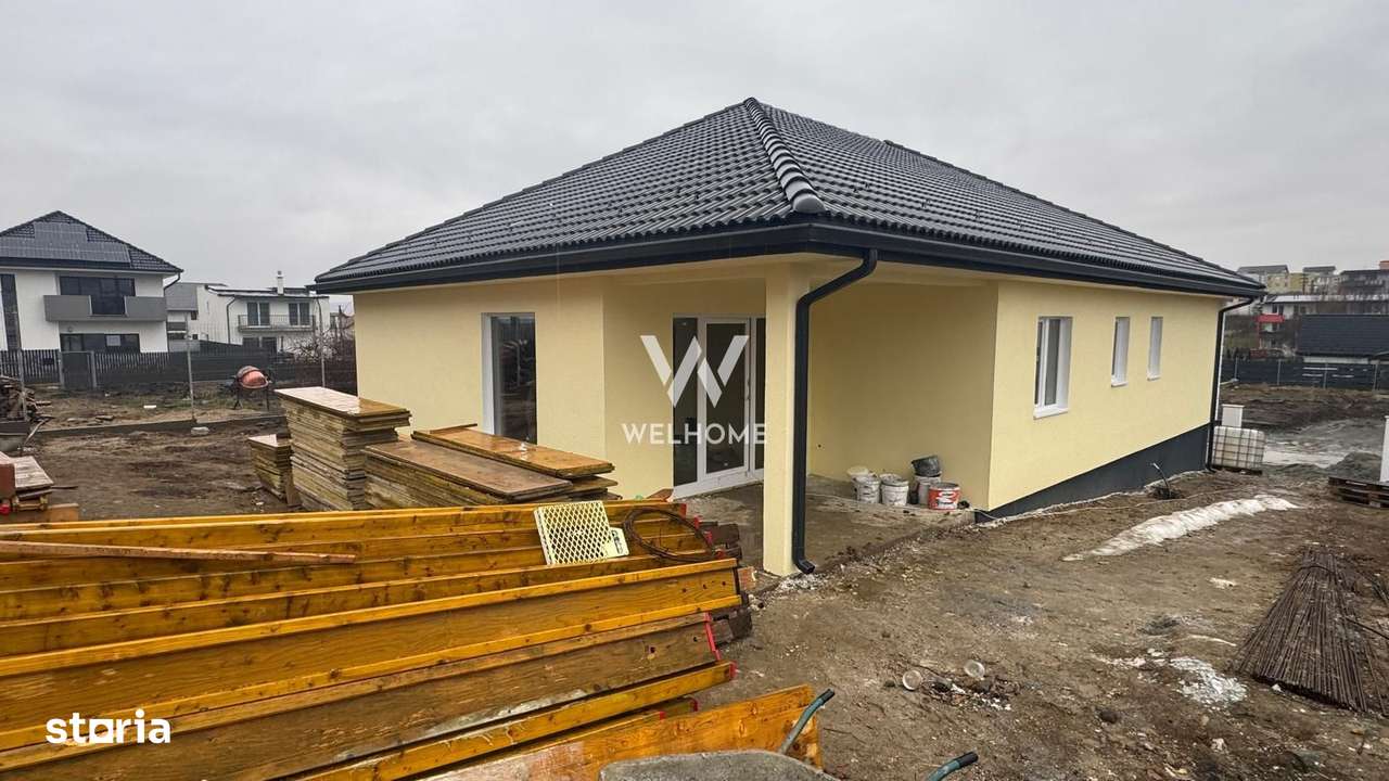 Casă pe un singur nivel, 3 dormitoare, living open-space, 2 băi, pod m