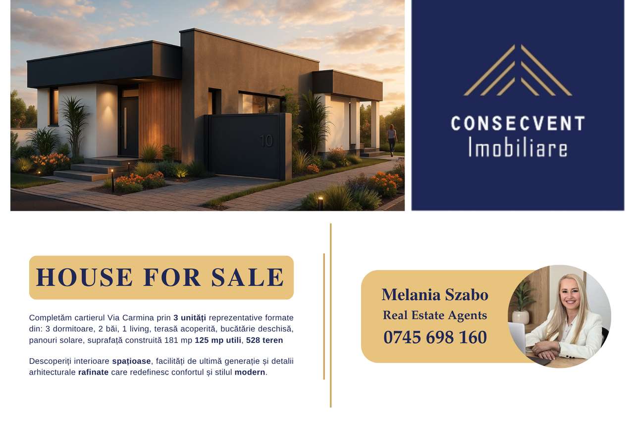 Casă modernă – proiect autorizat în Via Carmina, Arad (comision 0)