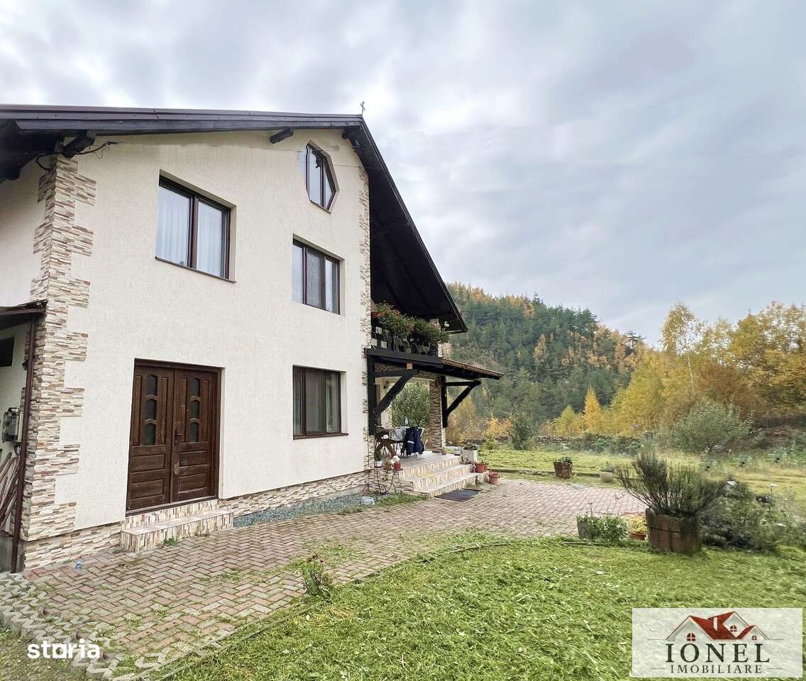 Casa de vanzare in Rosia Montana (Muntii Apuseni) la 15 km de Campeni, constructie din 2014, P+E, cu o suprafata construita de 150 mp/nivel. La parter se gaseste un living cu iesire pe terasa si semin...
