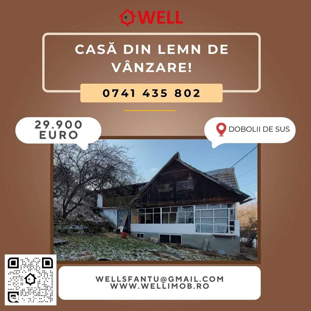 Casă din lemn de vânzare în Dobolii de Sus!