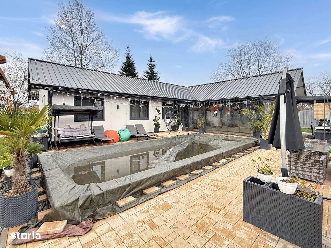 Casă contemporană cu grădină, spații versatile și intimitate–Crevedia