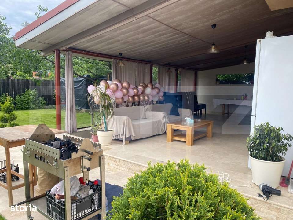 Aceasta proprietate te cucerește prin liniștea zonei, curtea spațioasă de aproape 946 mp, piscina privata și finisaje de calitate care îmbină perfect c...