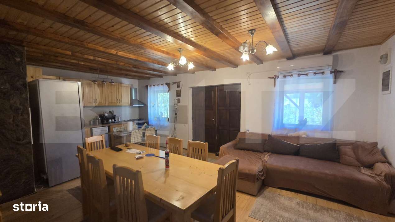Casa Leamna de Jos in suprafata utila 170 mp, teren 700 mp, 2 dormitoare, sufragerie, 2 bai. Zona cu aer curat imprejmuita de padure.