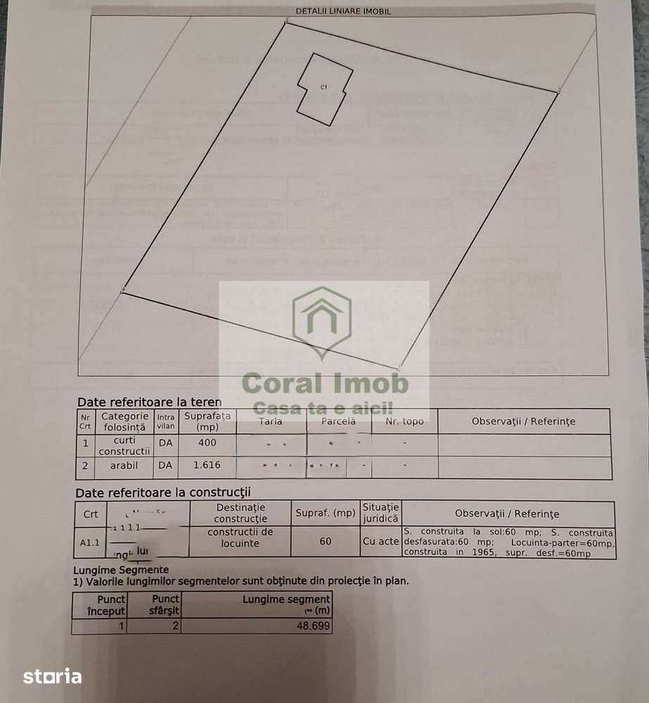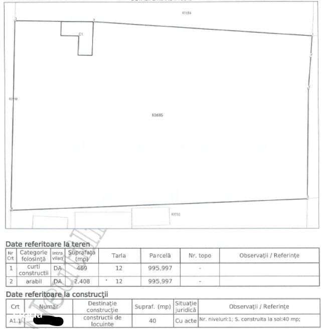 Teren 1100 mp cu casă demolata de vânzare în zonă rurală, 29 mp