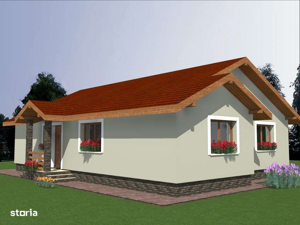 Casă la cheie pe 1 nivel 4 cam. 2 bai ,650 mp. teren