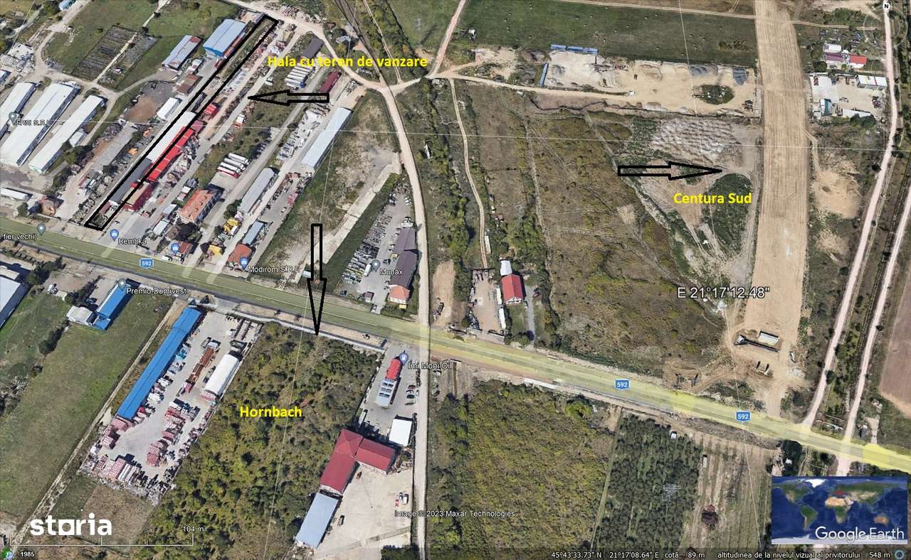 Hala 1200 mp pe un teren de 3400 mp, peste drum de Hornbach, cu acces direct la Calea Buziasului și viitoarea strada Magnus (vezi foto). Vad comercial excelent. Oportunitati de comert, depozit sau pro...