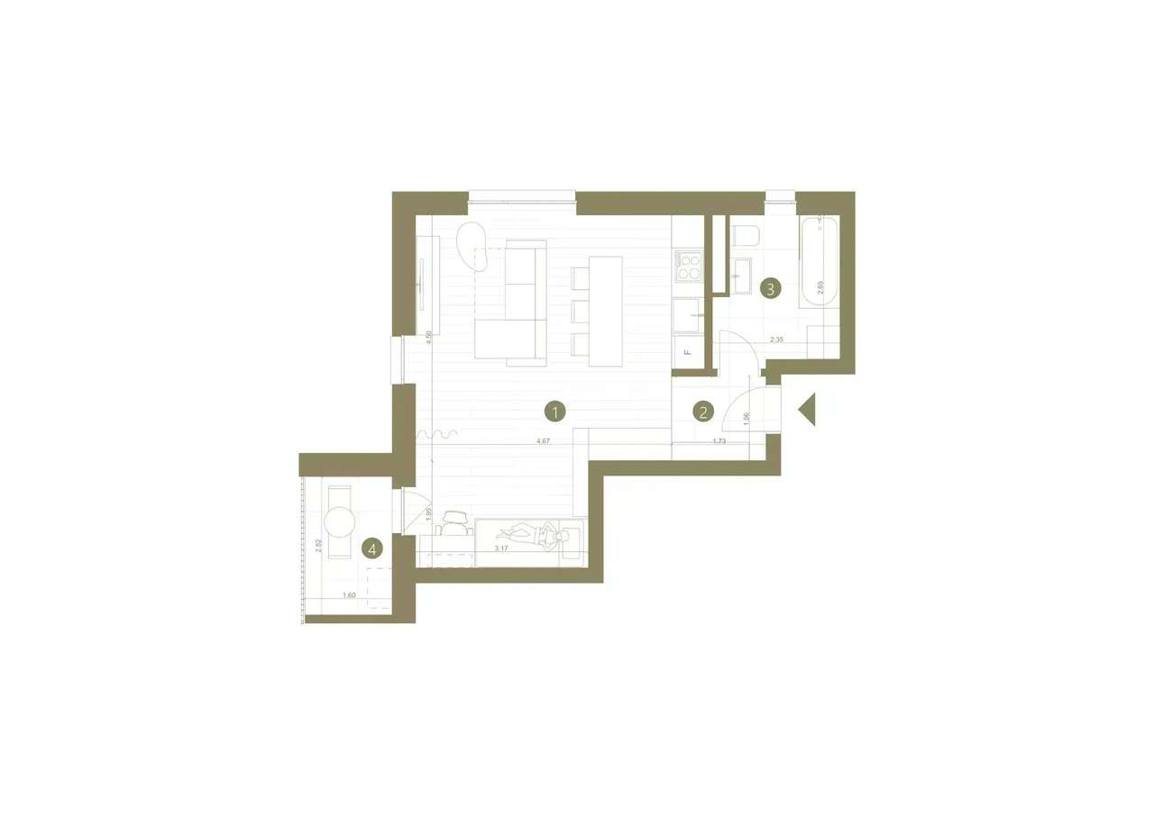 Apartament cu 1,5 camere în Confecții